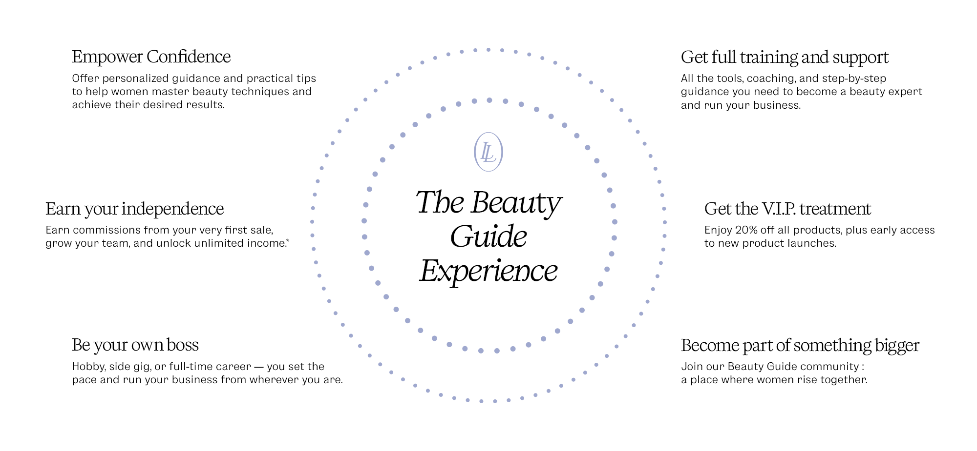 Created hand-in-hand with our Beauty Guides, our compensation plan is designed to reward your work from the start, and help you thrive.
